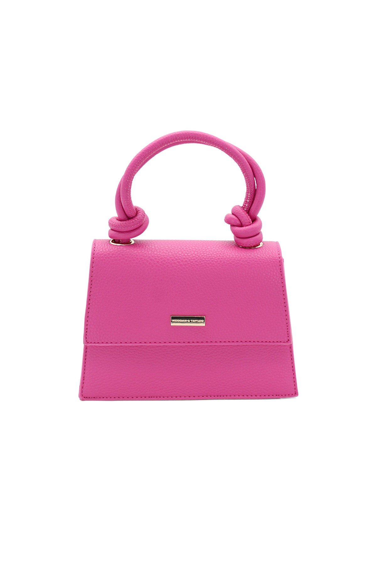 The Morgan and Taylor Naomi Top Handle Bag in Hot Pink is classic and chic, easily adding elegance to any look. The rectangular, structured shape and tall, top handle with knotted detailing, makes for a striking and elegant shape. The PU finish and simple press button closure make the bag an easy, go-to choice to elevate an everyday look, or styling for special occasions.