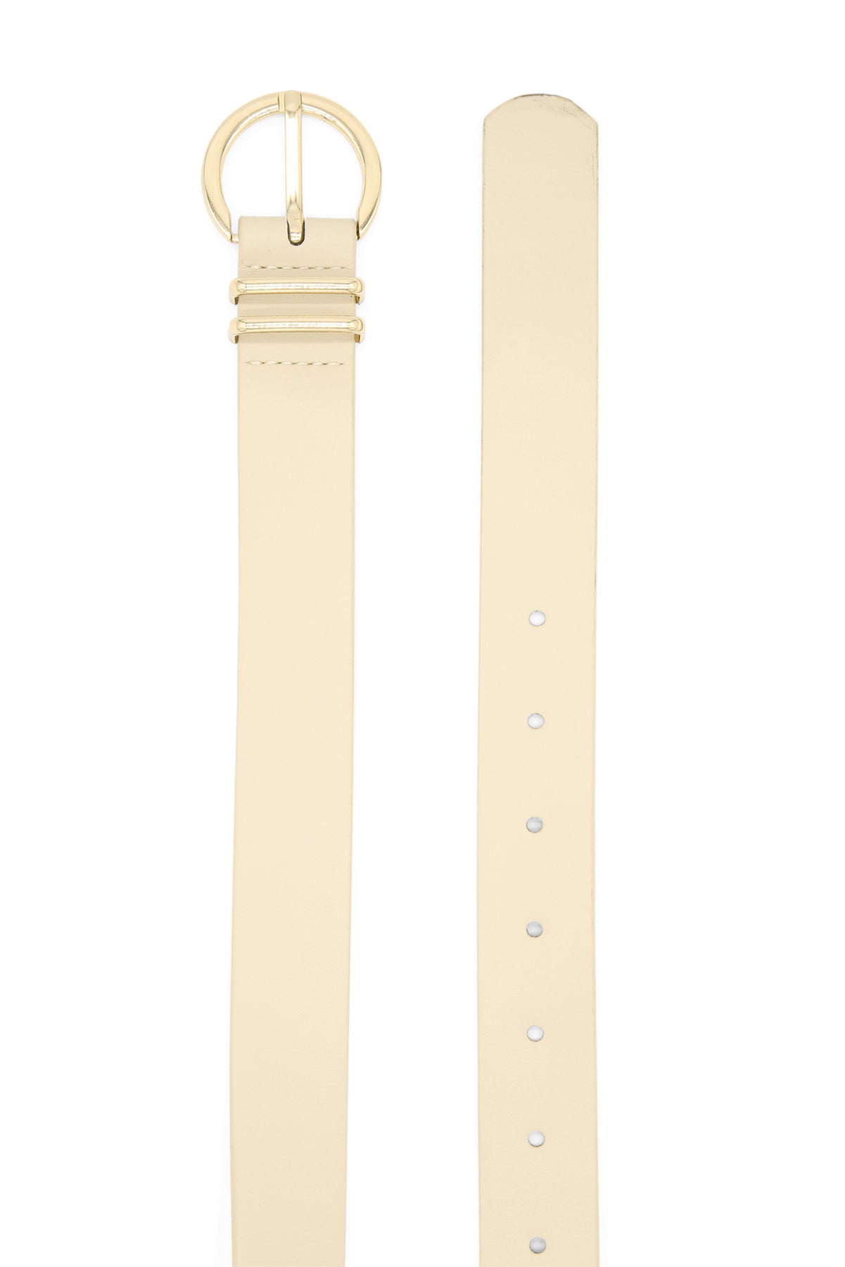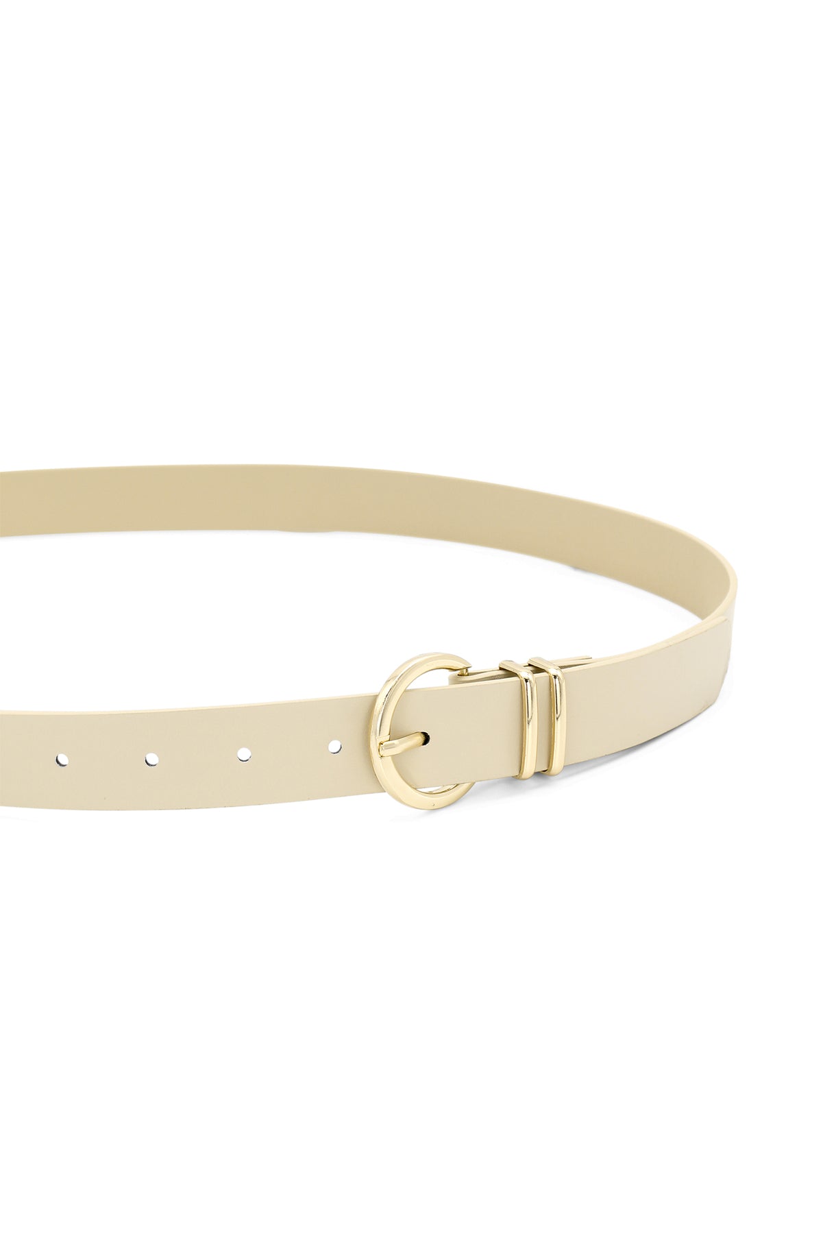 - Simple and elegant belt with a curving gold-finish buckle