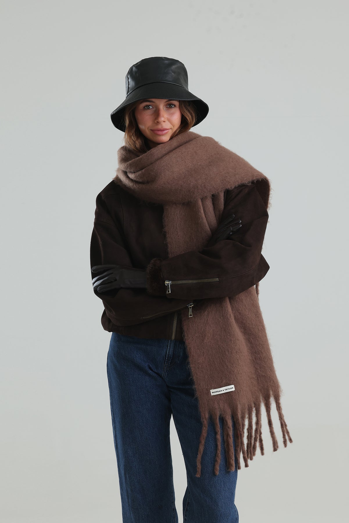 The Morgan and Taylor Blair Bucket Hat in black is a classic bucket hat shape with an edge. Perfect for someone looking for a statement piece that can easily be styled to multiple looks.