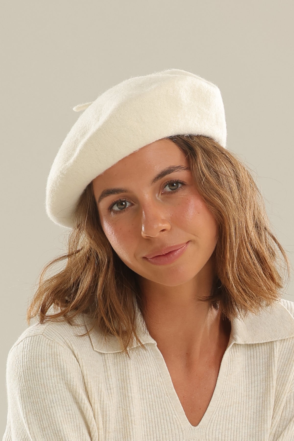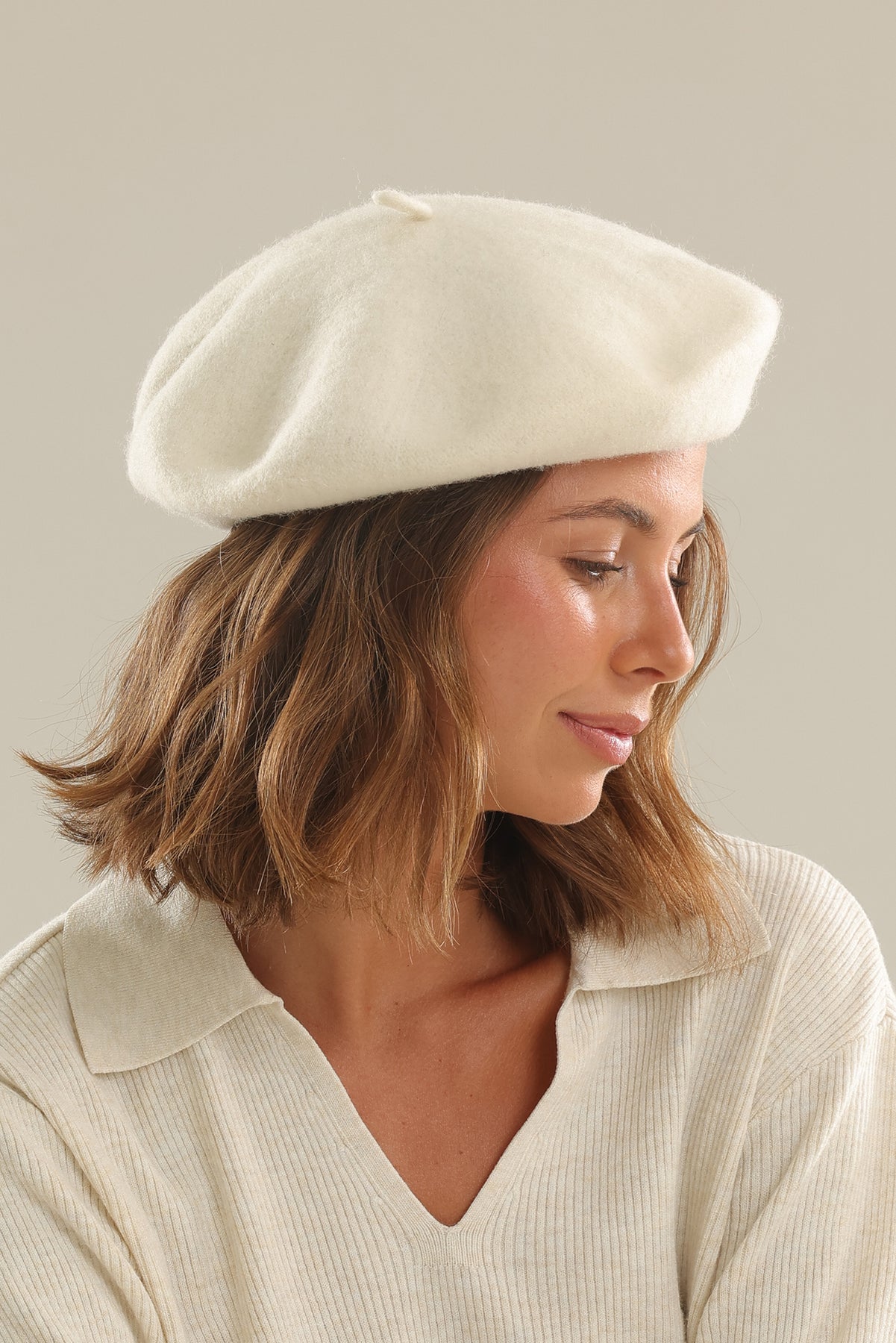 Lisa Wool Beret in White Cream