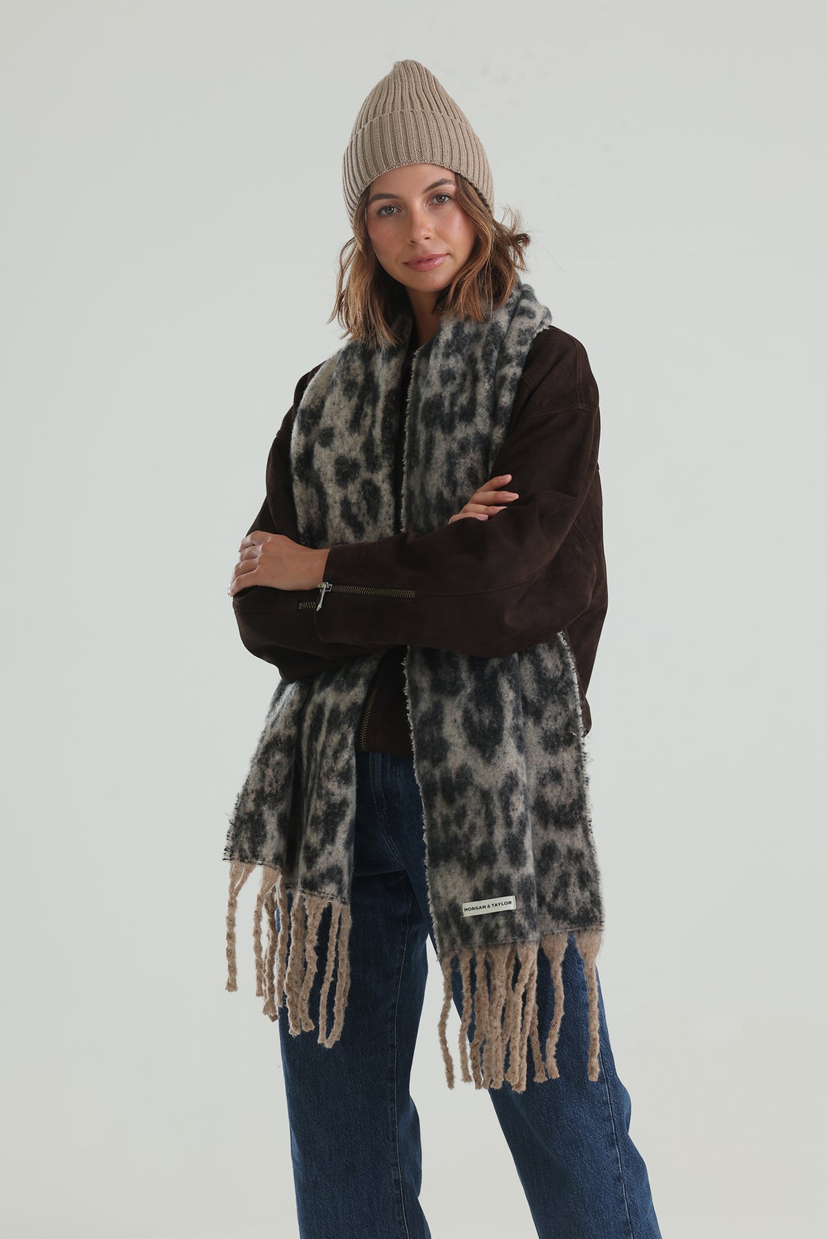 The Morgan & Taylor Mia Beanie in latte is a soft, wool-blend beanie. Made with ribbed knit details and a wide fold-over cuff, the Mia Beanie can be easily styled to many looks, a chic winter essential.