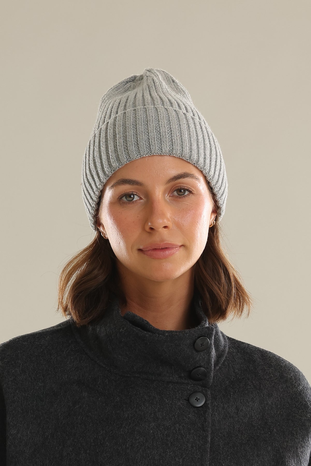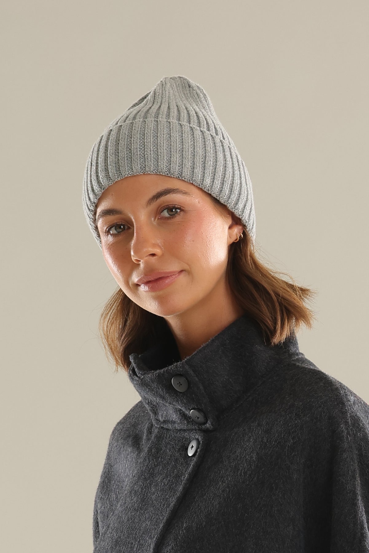 Mia Wool Blend Beanie in Grey