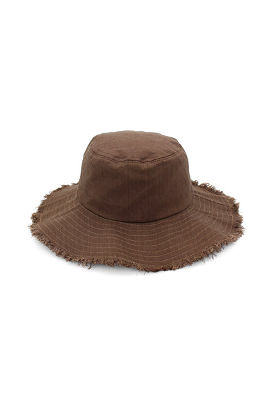Cleo Linen-Blend Bucket Hat in Chocolate Brown