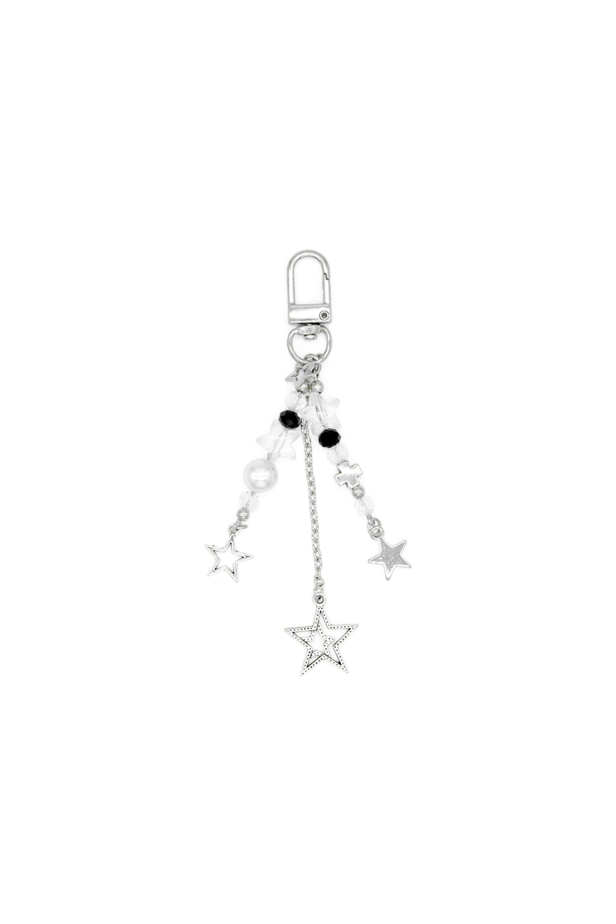 The Morgan & Taylor Nova Bag Charm Keychain in Silver is a chic and practical accessory. The bag keychain features three chain charms with intricate detailing. There are two beaded charms, and one simple, elegant chain charm, easily adding a little extra style to the everyday.