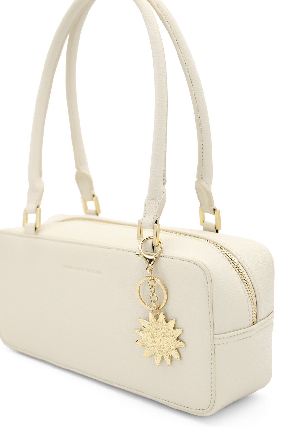 The Morgan & Taylor Solstice Bag Charm Keychain in Gold is a chic and practical accessory. The bag charm keychain features a classic sun charm that easily adds a little extra warmth to the everyday.