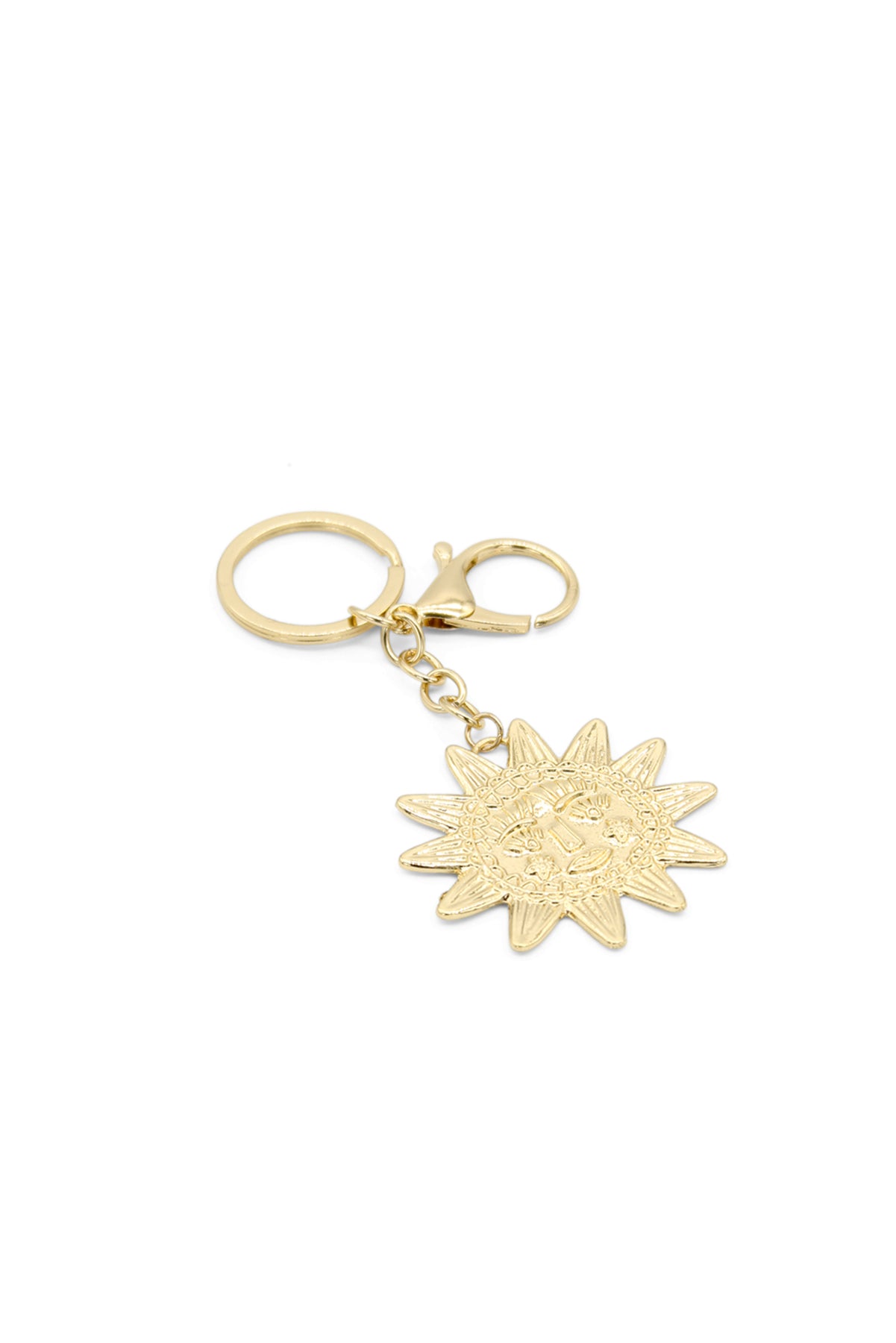 Along with the sun charm, the keychain also includes a classic, circular key ring for securing keys.