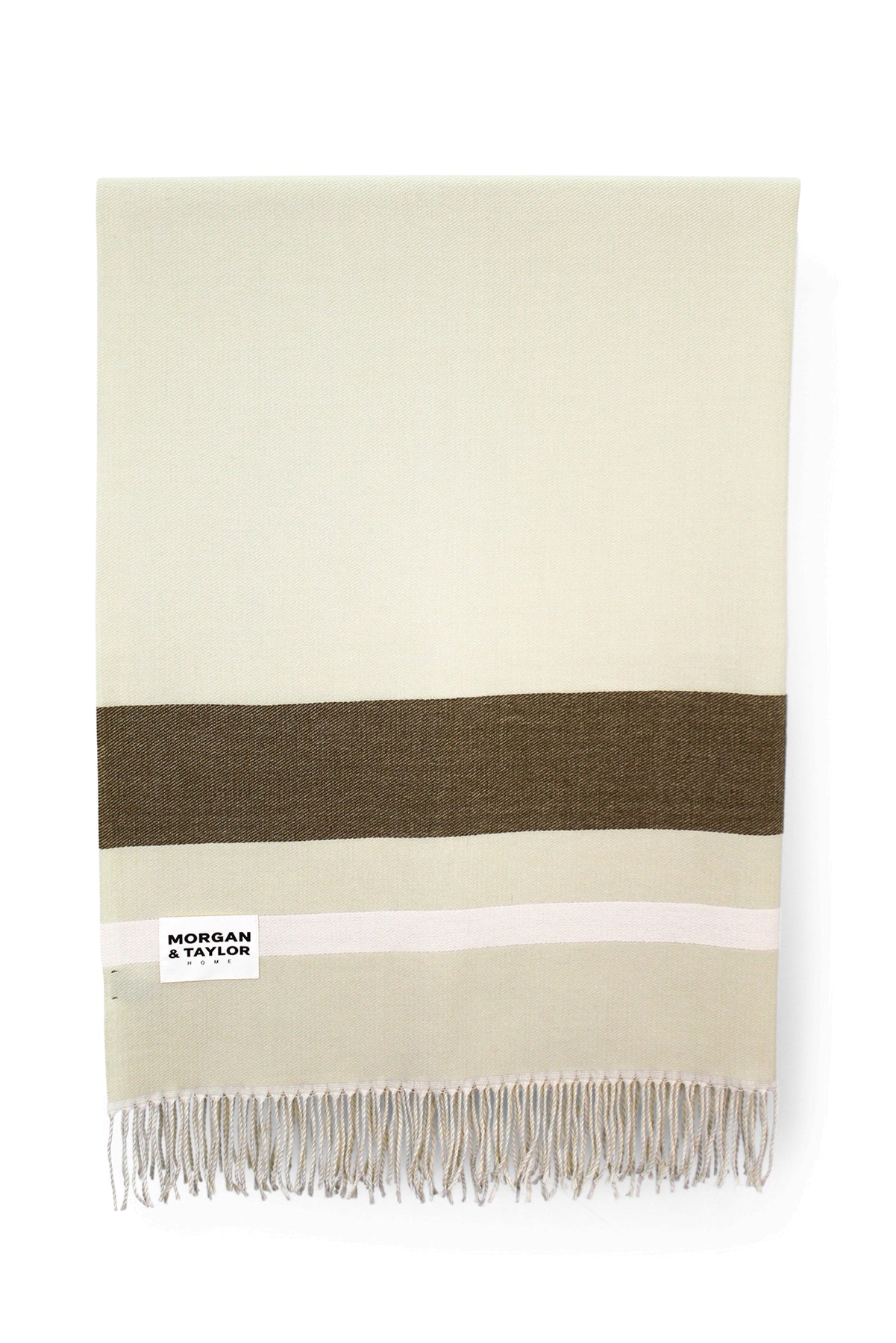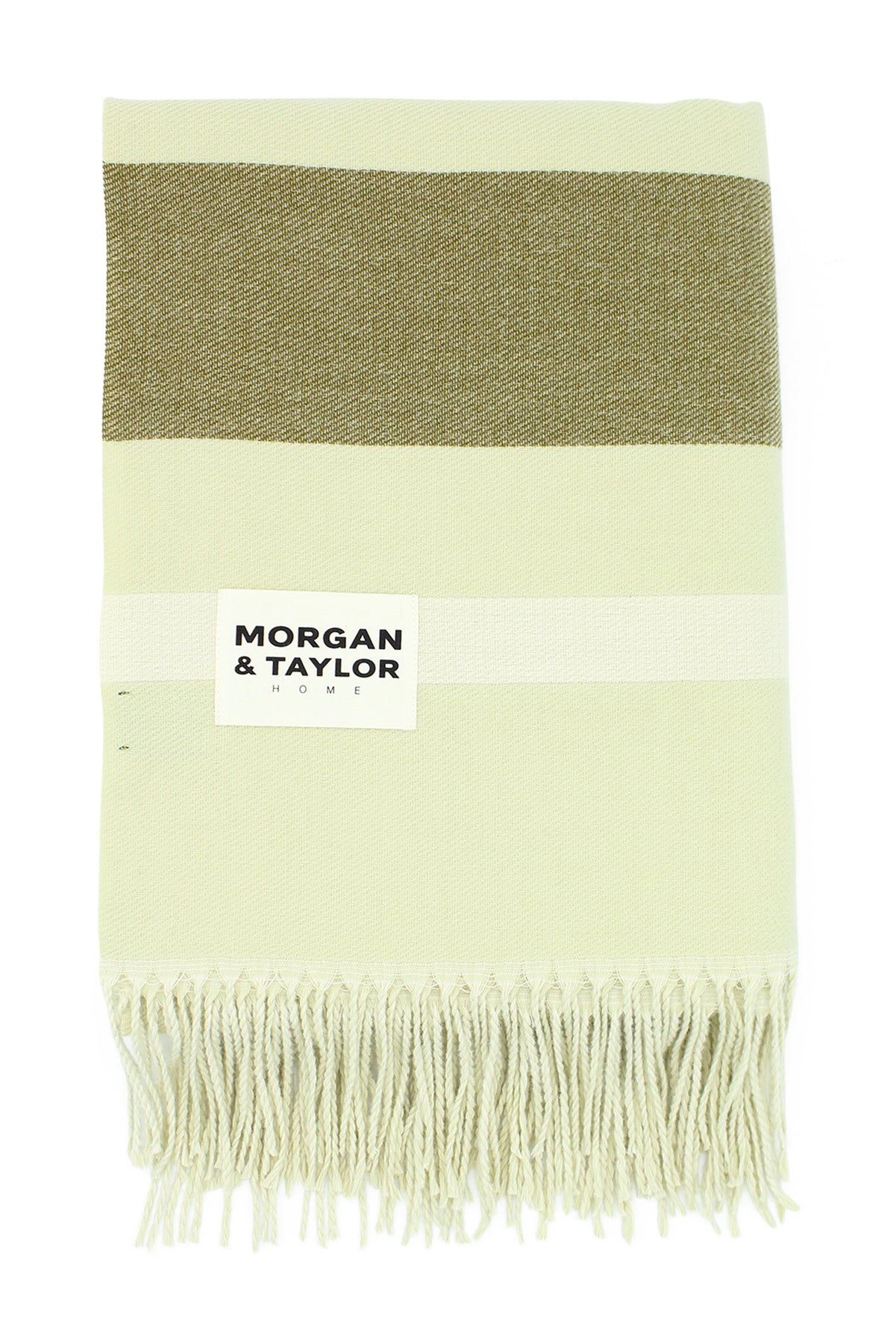 The Morgan & Taylor Modern Minimalism Throw Blanket in Sage Green is a cosy and chic addition to your decor. The design features a tonal stripe pattern, and is finished with neat fringing along the short edges of the throw blanket. The super luxe and soft feel throw blanket is made from a polyester and viscose jacquard weave, making for a comforting, go-to throw blanket you'll love all-year-round.