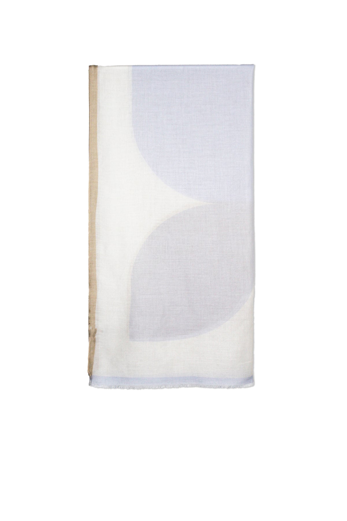 The lightweight, soft fabric features a chic, abstract pattern, and is finished with a neat, solid border around the edge.
