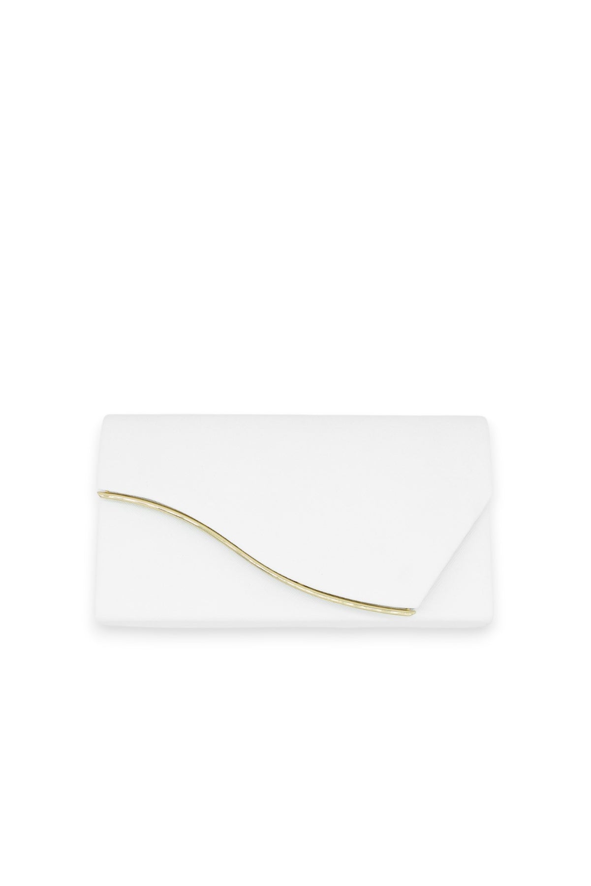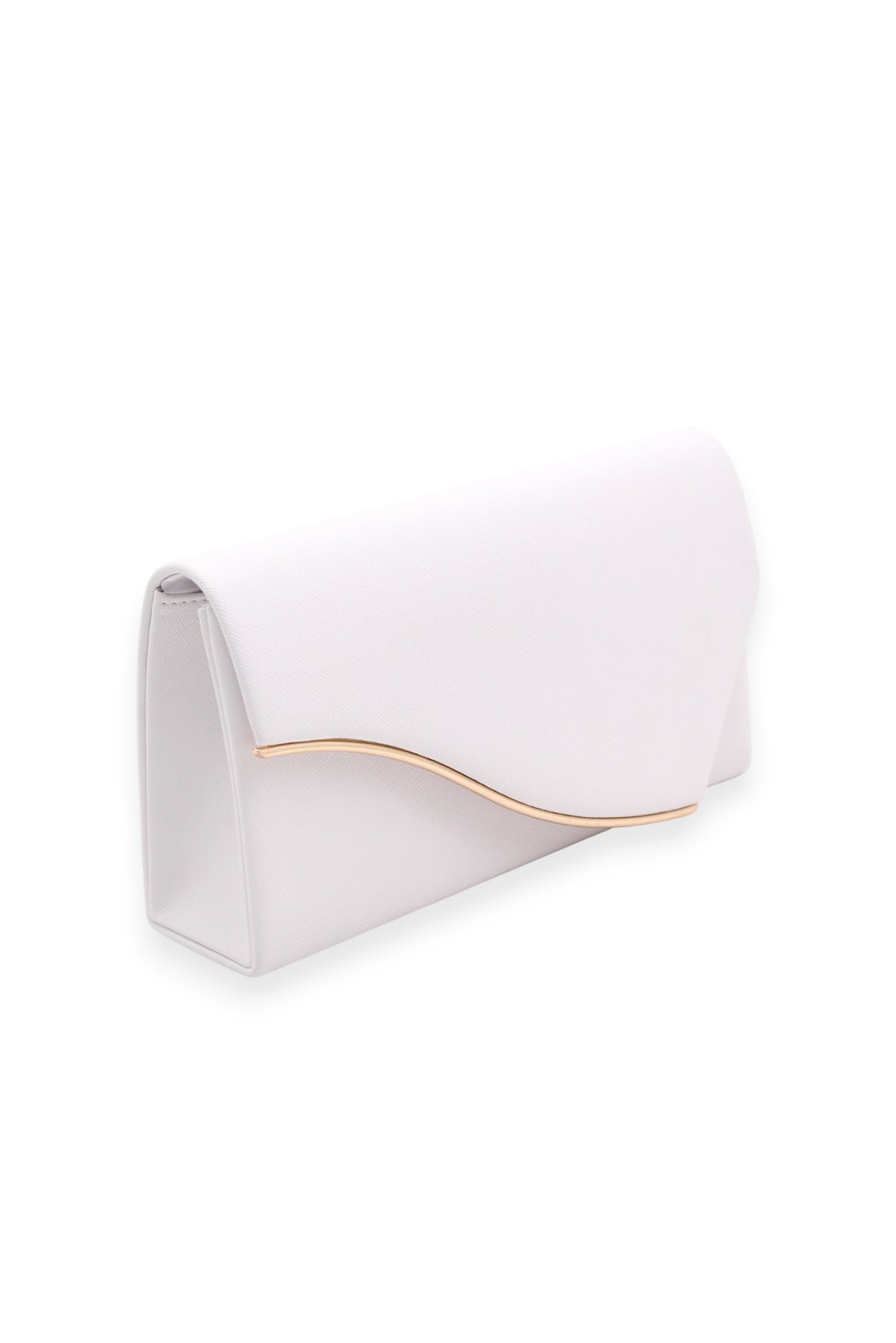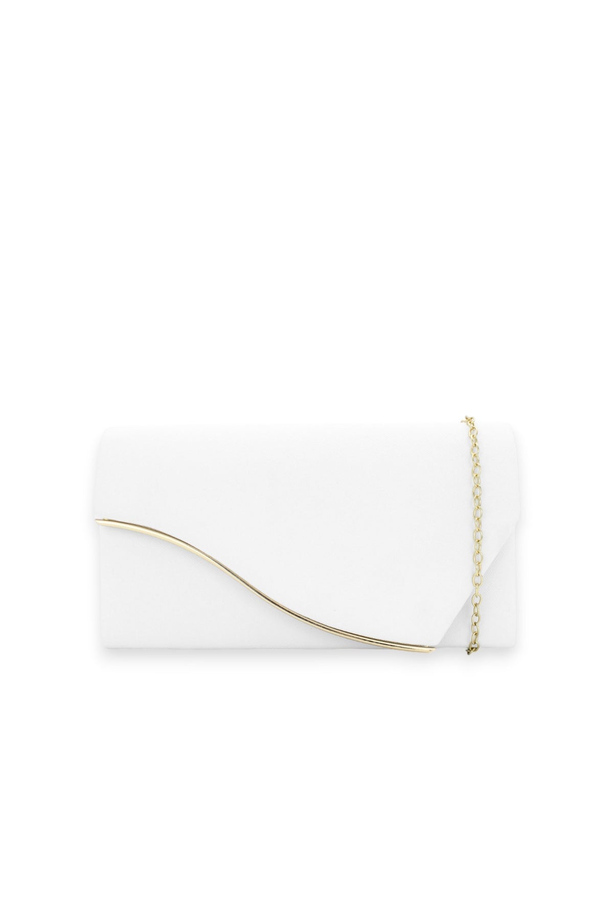 The Morgan & Taylor Jordana Clutch in White is a chic piece that can be styled for multiple occasions. The structured, envelope-style clutch is finished with contrasting, elegant hardware strip across the waving edge of the closure.