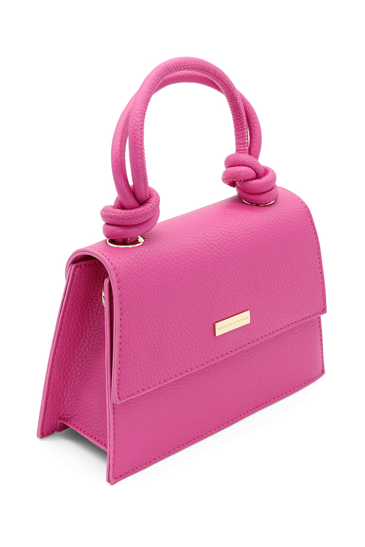 The Morgan and Taylor Naomi Top Handle Bag in Hot Pink is classic and chic, easily adding elegance to any look. The rectangular, structured shape and tall, top handle with knotted detailing, makes for a striking and elegant shape. The PU finish and simple press button closure make the bag an easy, go-to choice to elevate an everyday look, or styling for special occasions.