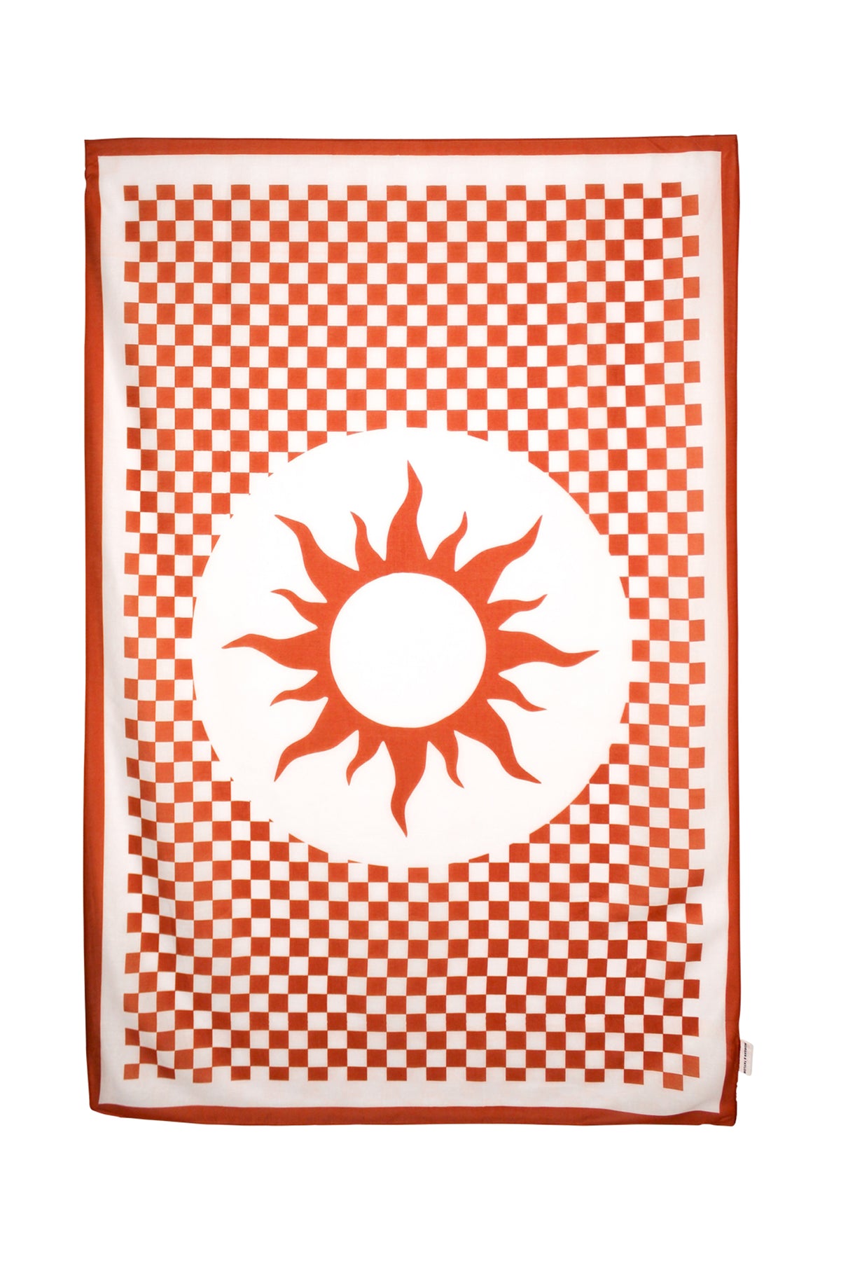 The Morgan & Taylor Athena Beach Sarong in Rust Orange is a chic, summer go-to. The design features a sun motif at the centre of a classic check pattern, and finished with a neat border around the sarong's edges. The pattern makes for an understated, chic cover-up that can be easily worn with many looks across the warmer months.