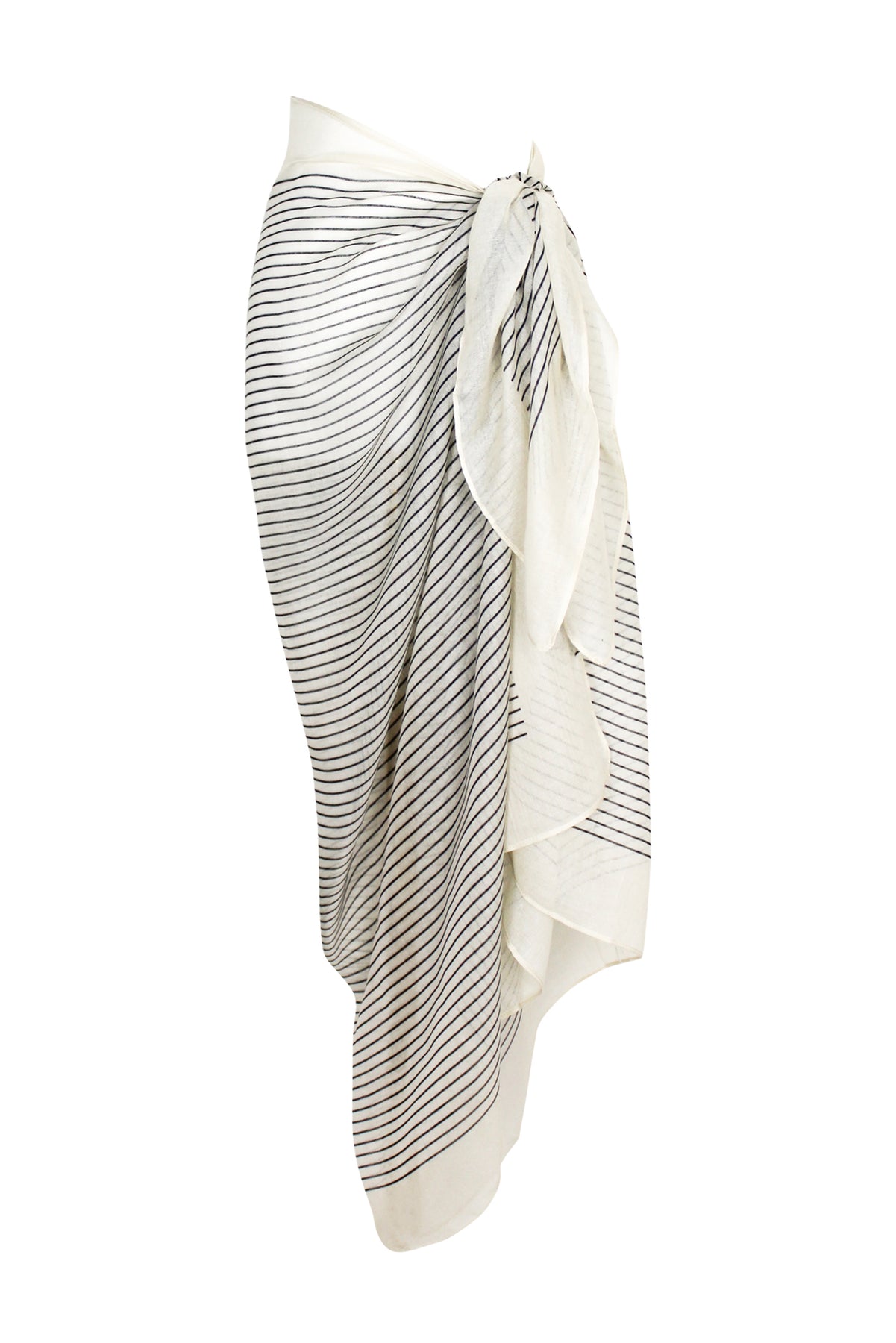 The Morgan & Taylor Mara Beach Sarong in Creamy White and Black Stripe is a chic, summer go-to. The design features neat, contrasting stripes across the body of the sarong, and is finished with a generous border around the edges. The sarong is a an understated, chic cover-up that can be easily styled to many looks across the warmer months.