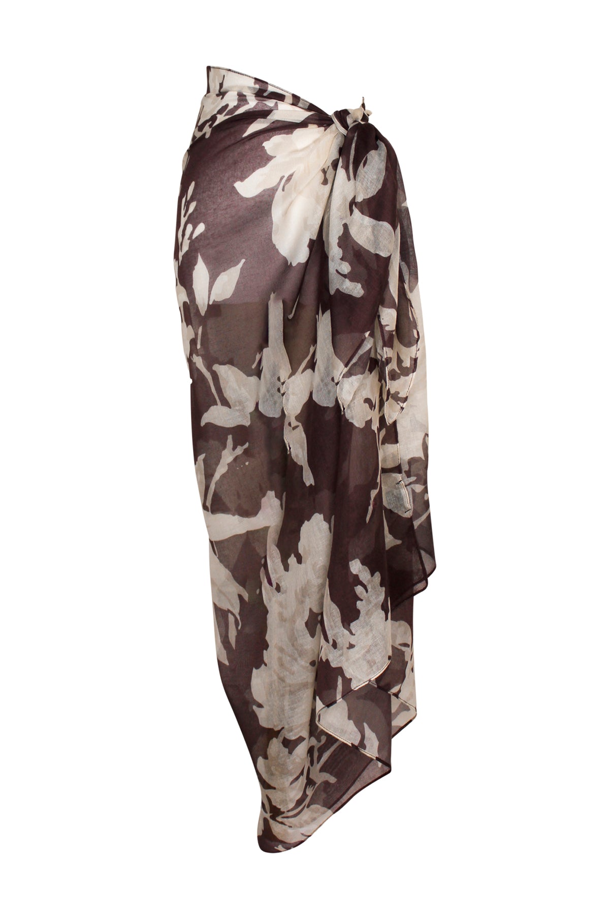 The Morgan & Taylor Tallulah Beach Sarong in Brown is an easy, summer go-to. The wide-length sarong features a classic, beach holiday floral motif on a solid background, making for a vintage, tropical feel. The sarong is easily styled to multiple looks across the warmer months.