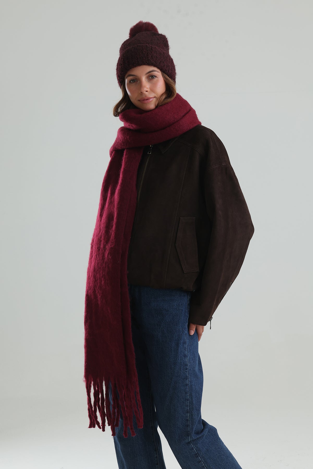 The Morgan & Taylor Ella Woven Scarf in Burgundy Red is a super snug, cosy and chic addition to a Winter wardrobe. The chunky scarf ensures an extra layer or warmth during the colder months.