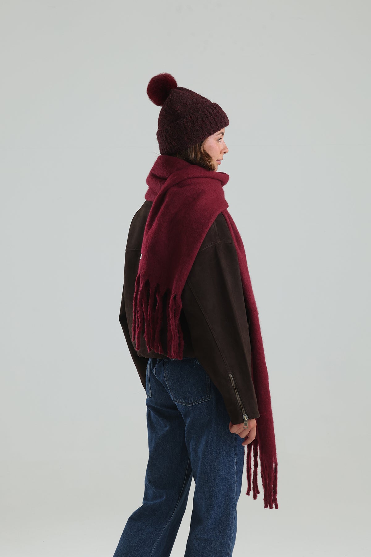 The Morgan & Taylor Elsie Boucle Beanie in Burgundy Red is a cosy and cute Winter beanie that can easily be styled to many looks. Designed with a neat pom pom stitched on the crown, and finished with a chunky folded cuff, the beanie will be a go-to throughout the cold seasons.