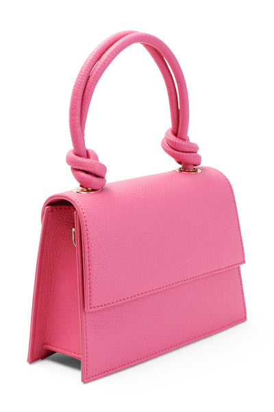 The Morgan and Taylor Naomi Top Handle Bag in Hot Pink is classic and chic, easily adding elegance to any look. The rectangular, structured shape and tall, top handle with knotted detailing, makes for a striking and elegant shape. The PU finish and simple press button closure make the bag an easy, go-to choice to elevate an everyday look, or styling for special occasions.